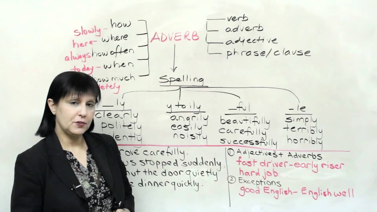 In this grammar lesson, I show you an easy way to understand and use adverbs correctly. You’ll also learn about the difference between good and well, hard and hardly, and more! No more confusion!