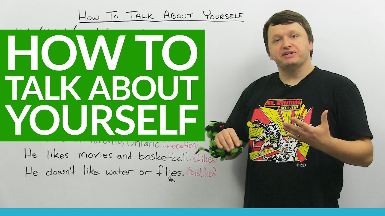 I am, I like, I don't like, and My name is are some examples of how to begin a sentence when describing yourself to someone you have just met. I’ll teach you what to say and how to say it. Watch this lesson, and then practice these basic sentences to perfect your beginner conversation skills.