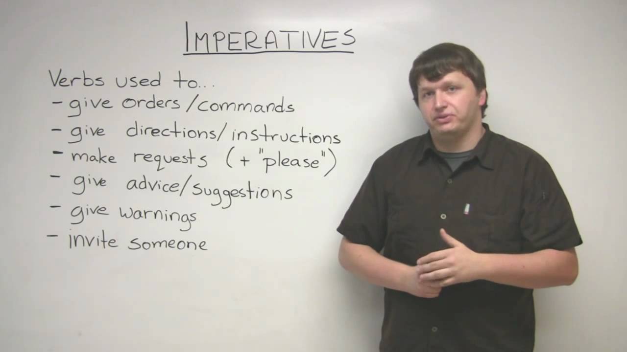 In this English grammar lesson, I show you the many uses for imperatives. If you ever wanted to know how to give clear commands or directions to someone, or even how to make a request, this lesson will help you.