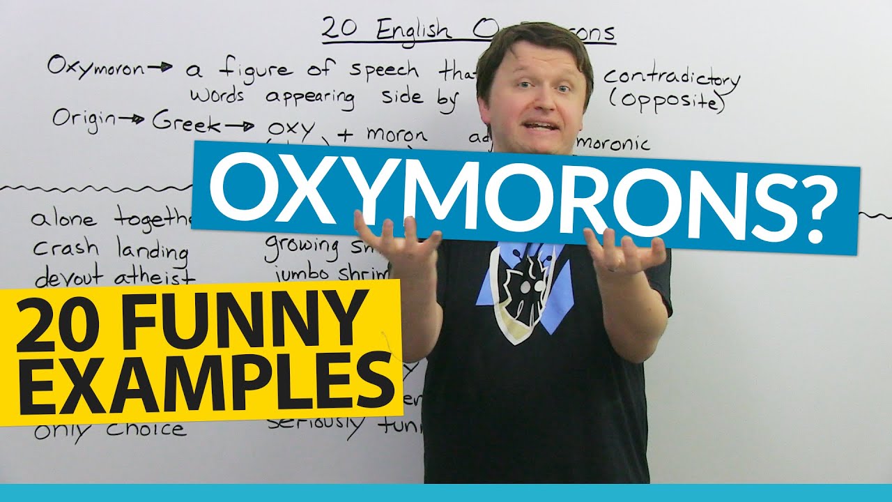 oxymoron is? This video starts with a quick definition of oxymorons. They’re a funny part of the English language! Oxymorons are figures of speech that have two contradicting terms. Using oxymorons correctly will make your English speaking and writing more descriptive. They’re fun to learn and are a great boost for your vocabulary, too. In this lesson, I’ll share 20 oxymorons that are common in everyday English, I’ll explain them, and I’ll give you examples of how they are used. So don’t be scared! Oxymorons are fun and easy! Take the quiz to make sure you know these phrases correctly, then start using them in your own conversations!